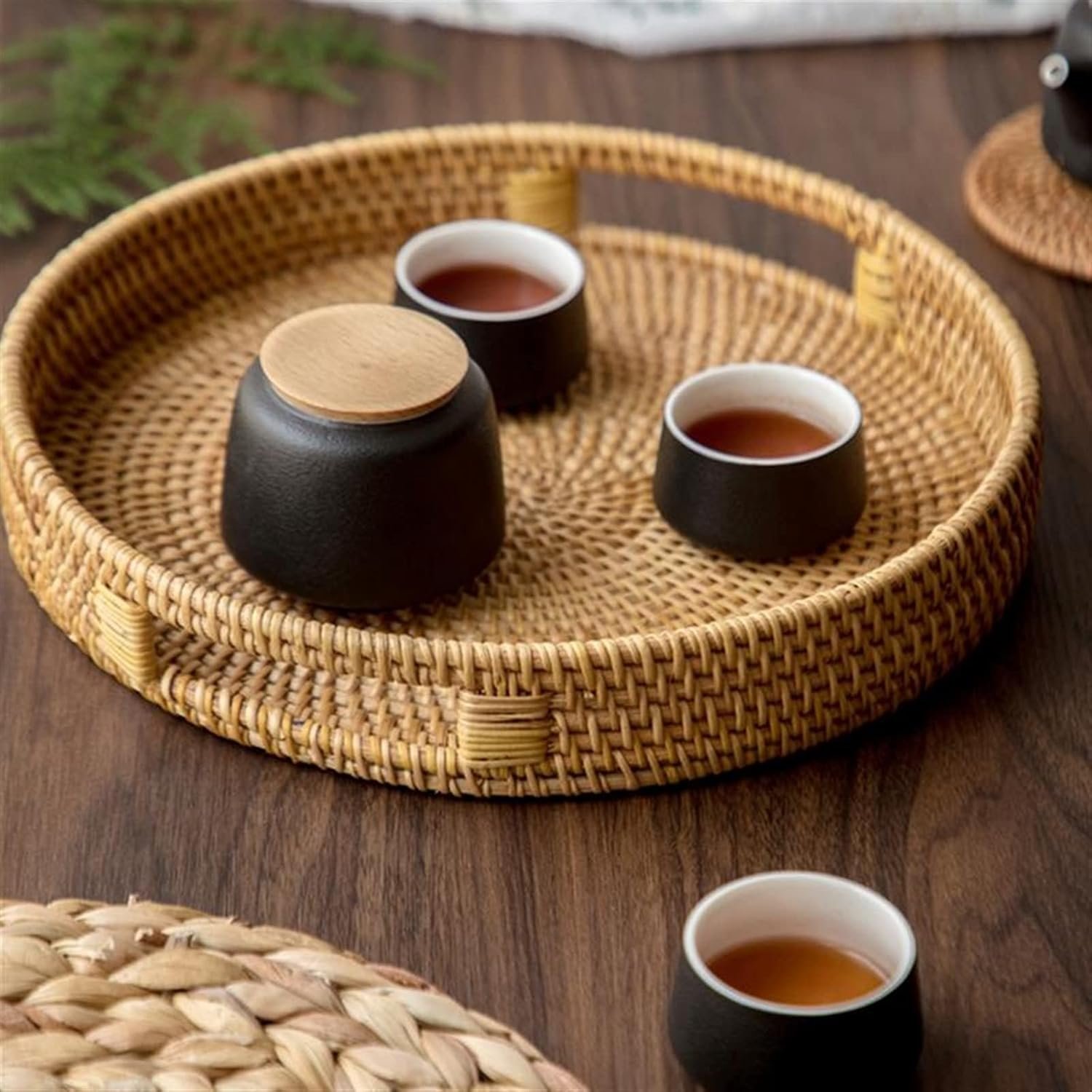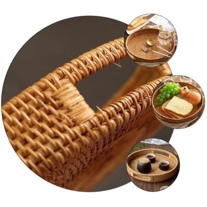 • Multi-Purpose Storage Tray – This woven tray basket is perfect for everyday storage and display. Use it to hold items for the living room,Bedroom or kitchen, perfect for serving food, drinks, coffee, tea, water, wine, cake, dessert, snacks, dry fruit, etc. Also can hold remote control,phone, keys and other items and keep them in one place with this rattan tray
